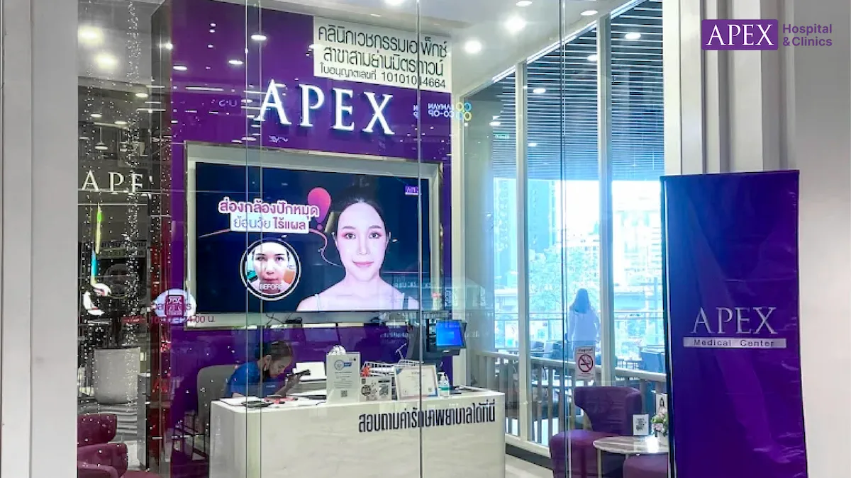 Apex Clinic สามย่านมิตรทาวน์ เป็นศูนย์บริการด้านผิวพรรณและความงาม ที่ตั้งอยู่บนทำเลศักยภาพใจกลางกรุงเทพฯ ด้วยการเชื่อมต่อโดยตรงกับรถไฟฟ้า MRT สถานีสามย่าน บรรยากาศภายในคลินิกได้รับการออกแบบให้มีความทันสมัย สะอาดตา และเป็นสัดส่วน มอบความรู้สึกเป็นส่วนตัวและผ่อนคลายให้กับผู้เข้ารับบริการทุกคน ที่นี่มีบริการด้านการดูแลผิวพรรณและความงามที่หลากหลาย ตั้งแต่การดูแลสุขภาพผิวขั้นพื้นฐาน โปรแกรมฟื้นฟูผิวหน้าไปจนถึงการใช้เทคโนโลยีเพื่อการยกกระชับ ปรับรูปหน้า และดูแลรูปร่าง นอกจากนี้ยังมีบริการเลเซอร์กำจัดขน และการให้วิตามินเพื่อการบำรุงจากภายใน