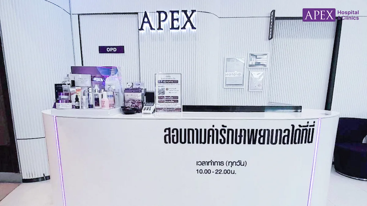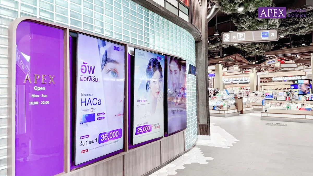 APEX Clinic เทอร์มินอล 21 พระราม 3 คลินิกให้บริการด้านความงามหลากหลายรูปแบบ ทั้งการดูแลผิว ฟื้นฟู ปรับรูปหน้า และโปรแกรมเฉพาะบุคคล ผ่านการประเมินโดยทีมบุคลากรทางการแพทย์ผู้มีประสบการณ์