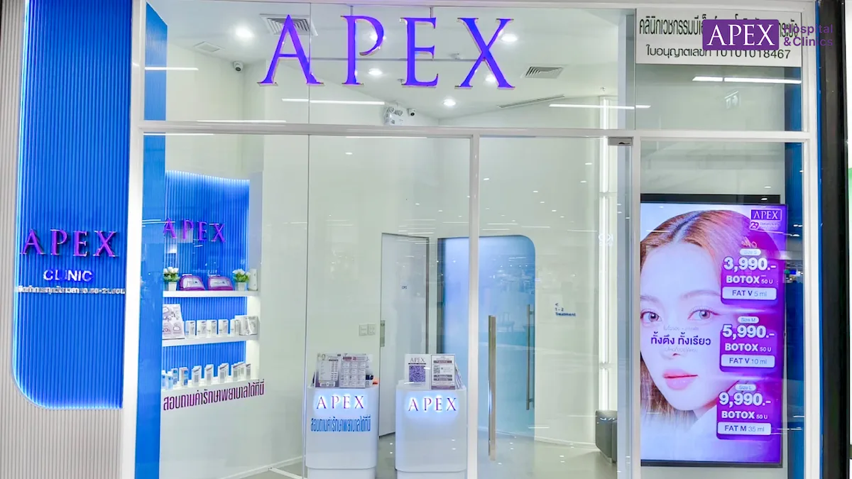 Apex Clinic (เลขใบอนุญาตฯ 10101029161) คลินิกเสริมความงาม สาขาเซ็นทรัลพระราม2 เราพร้อมเป็นผู้ช่วยดูแลความงามและเรือนร่างของคุณ
